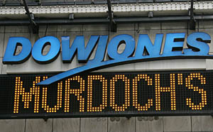 2007年5月1日,默多克新聞集團(tuán)競(jìng)購(gòu)道瓊斯的新聞字幕從位于美國(guó)紐約時(shí)報(bào)廣場(chǎng)的道瓊斯公司標(biāo)志下滾動(dòng)發(fā)布。新華社記者 侯俊