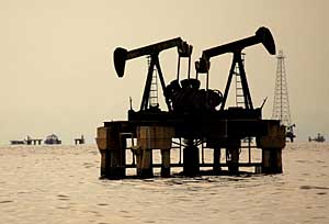 | 圖為委內(nèi)瑞拉馬拉開波湖上的石油開采設(shè)備。本報(bào)資料照片 | 本報(bào)羅馬電