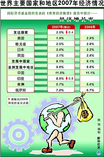 由于主要新興市場經(jīng)濟(jì)體繼續(xù)保持強(qiáng)勁增長,并很大程度上抵消了美國經(jīng)濟(jì)增長放慢的不利影響,2007年世界經(jīng)濟(jì)依然保持了快速增長。但金融市場動蕩和油價飆升給世界經(jīng)濟(jì)增長前景蒙上了陰影,使世界經(jīng)濟(jì)面臨的風(fēng)險顯著增大。