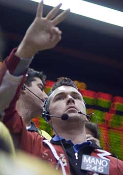 | 11日,美聯(lián)儲(chǔ)宣布降息后,交易員在芝加哥商品交易所忙碌。當(dāng)日,美國(guó)聯(lián)邦儲(chǔ)備委員會(huì)決定,將聯(lián)邦基金利率即商業(yè)銀行間隔夜拆借利率再降0.25個(gè)百分點(diǎn)至4.25%,以應(yīng)對(duì)信貸危機(jī)及可能產(chǎn)生的經(jīng)濟(jì)衰退后果。這是自9月份以來美聯(lián)儲(chǔ)第三次降息。新華社/路透 | 經(jīng)濟(jì)增速“正在放緩”