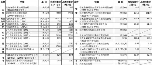 由于電力短缺,全球最大的鉑(白金)生產(chǎn)國——南非的金礦仍未恢復(fù)正常生產(chǎn),市場對其供給的擔(dān)憂加劇。當(dāng)周,紐約和倫敦市場的鉑期貨價均創(chuàng)歷史新高,分別達到每盎司1776.5美元和1764.5美元。此外,受美元匯率下跌影響,國際金價也一度創(chuàng)下歷史新高。 石油市場方面,由于投資者預(yù)計美聯(lián)儲將采取降息舉措且政府經(jīng)濟刺激方案可能使美國經(jīng)濟避免陷入衰退,當(dāng)周前三個交易日國際油價接連上漲。然而,1月31日和2月1日美國公布的不利數(shù)據(jù)卻打壓油價連續(xù)下行,2月1日紐約、倫敦兩地油價盤中一度下挫超過3美元,且最終分別收于88.96美元和89.44美元。