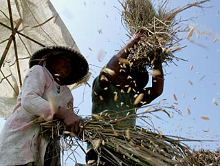 | 4日,在印度尼西亞西爪哇省,兩名農(nóng)民在打谷脫粒。由于米價飆升,東南亞國家聯(lián)盟10國貿(mào)易部長3日在印度尼西亞巴厘島達成共識,同意就大米市場展開合作。包括印度、越南、印度尼西亞和巴西在內(nèi)的一些國家已對糧食出口進行限制,以確保國內(nèi)供應(yīng),抑制通貨膨脹。新華社/路透 | 2日,作為全球最大大米出口國之一的泰國政府拋出一項提議,打算聯(lián)合其他4個出口大米的東盟成員國成立類似石油輸出國組織(OPEC)的“大米輸出國組織”(OREC),以確保自身利益。這一提議引發(fā)極大的爭議。 泰國政府發(fā)言人蘇觸扎2日說,泰國商業(yè)部長明旺·桑素旺將同老撾、緬甸、柬埔寨和越南4國的商業(yè)部長會談,商討建立一個類似歐佩克(OPEC)的聯(lián)合組織,以獲得國際大米價格的更大控制權(quán)。 “雖然我們是世界糧食中心,卻對糧價方面沒什么影響力,”美聯(lián)社援引蘇觸扎的話說,“石油價格大幅上漲,我們進口昂貴的石油,卻非常低廉地出售大米,這對我們不公平,損害我們的貿(mào)易平衡! 老撾外交部發(fā)言人永·占塔蘭西2日說,老撾政府會“認真考慮”泰國提議,因為那會賦予5國“談判權(quán)力”。 柬埔寨歡迎這一提議,認為在當前全球糧食危機的情況下,“有必要”建立這樣的組織!巴ㄟ^形成一個聯(lián)合組織,我們能夠幫助避免價格戰(zhàn),就糧食安全交流信息。”柬埔寨政府發(fā)言人、新聞大臣喬卡納里說。 蘇觸扎證實,泰國總理沙馬·順達衛(wèi)4月30日同緬甸總理登盛會晤時提出上述想法。沙馬說,緬甸方面予以支持。越南官員說,正在研究這一提議,可能予以支持。 與大米出口國的積極響應(yīng)相反,同屬東盟的全球最大大米進口國之一的菲律賓3日對泰國的提議感到擔憂,認為這一提議在全球糧食危機中不能解決困難,反而會帶來更大難題。 菲參議院多數(shù)黨團領(lǐng)袖弗朗西斯·潘希利南說,所謂“大米輸出國組織”“與窮人為敵,只會加劇而不會緩解饑餓和貧窮”,“出于人道主義,他們必須三思而行”。 菲參議院農(nóng)業(yè)委員會主席埃德加多·安加拉擔心,少數(shù)幾個糧食生產(chǎn)國控制某種糧食,可能使消費者買不起這種糧食。 參議院貿(mào)易和商業(yè)委員會主席曼紐爾·羅哈斯呼吁菲律賓外交部趕在泰國提議落實前,正式提議召開東盟領(lǐng)導人會議,討論糧食安全問題。“東盟必須作為一個地區(qū)集團共同謀求貿(mào)易權(quán)利,成員國應(yīng)保持東盟精神!绷_哈斯說。 對泰國提議持懷疑態(tài)度的人士認為,醞釀中的“大米輸出國組織”要想取得像歐佩克(OPEC)那樣的地位并不容易,因為控制大米供應(yīng)量的難度不小。 泰國大米出口聯(lián)合會主席奧帕斯旺斯認為,“大米輸出國組織”把巴基斯坦和印度這樣的大米生產(chǎn)大國排除在外,而且難以控制農(nóng)民生產(chǎn)行為,因此很難左右國際市場。 亞洲開發(fā)銀行行長黑田東彥3日在馬德里出席亞行年會前夕接受媒體提問時說,農(nóng)產(chǎn)品貿(mào)易應(yīng)當以市場為指針,成立所謂的“大米輸出國組織”不僅會損害大米進口國的利益,也無益于大米出口國。 他說,不應(yīng)簡單地將亞洲糧食價格大幅上漲歸咎于供應(yīng)不足,迄今為止糧食供給并沒有出現(xiàn)明顯短缺。不同的統(tǒng)計結(jié)果均顯示,大部分農(nóng)作物供應(yīng)實際上是在穩(wěn)步增長,就亞洲整體而言,糧食供應(yīng)足以滿足需求。從中長期來看,提高農(nóng)業(yè)生產(chǎn)率才是應(yīng)對目前糧價上漲最為重要的策略。
