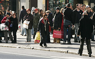 | 消費(fèi)者手持購物袋在美國紐約曼哈頓的第五大道穿行。新華社/法新(資料照片) | 本報(bào)華盛頓電