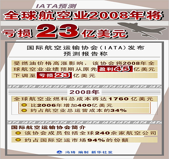 [圖表新聞]全球航空業(yè)今年將虧損23億美元