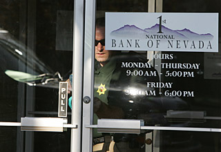 | 在美國內(nèi)華達(dá)州首府卡森城的內(nèi)華達(dá)州第一國民銀行,一名調(diào)查人員鎖上大門。美國銀行業(yè)監(jiān)管部門——聯(lián)邦儲(chǔ)蓄保險(xiǎn)公司上月底宣布,位于內(nèi)華達(dá)州的第一國民銀行和位于加利福尼亞州的第一傳統(tǒng)銀行停業(yè)。新華社/美聯(lián) | 國際貨幣基金組織(IMF)前首席經(jīng)濟(jì)學(xué)家、哈佛大學(xué)經(jīng)濟(jì)學(xué)教授肯尼思·羅格夫19日在新加坡說,次貸危機(jī)還將惡化。未來數(shù)月內(nèi),將有美國大銀行倒閉。