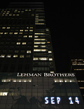 | 這是14日晚在美國紐約拍攝的雷曼兄弟公司總部大樓。新華社記者 侯俊