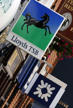 位于英國英格蘭中部的一家萊斯銀行辦事處門前懸掛的標(biāo)志。新華社/路透 |