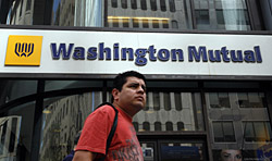 17日,在美國紐約,一名行人經(jīng)過華盛頓互惠銀行分行門口。新華社/路透 |