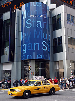 17日,一輛出租汽車駛過位于美國紐約的摩根士丹利大樓。新華社/路透 | 由于美國政府16日(以下均為當(dāng)?shù)貢r(shí)間)拯救美國國際集團(tuán)(AIG)的舉措未能緩解全球金融市場(chǎng)的信心危機(jī),17日英美股市均大幅下挫,金融板塊更是遭受沉重打擊。股價(jià)暴跌令許多潛在的銀行間并購交易浮出水面,盡管部分交易目前尚未敲定,但毫無疑問的是,這場(chǎng)百年一遇的金融風(fēng)暴將帶來一次英美乃至全球金融行業(yè)的大洗牌。