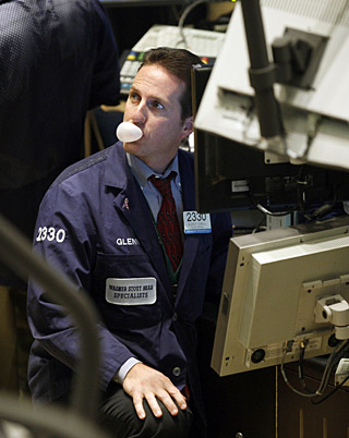 | 10日,美國紐約證券交易所內(nèi)一名交易員吹泡泡糖。當(dāng)日,由于投資者對經(jīng)濟(jì)疲軟導(dǎo)致公司盈利下滑的擔(dān)憂抵消了中國宣布巨額經(jīng)濟(jì)刺激計(jì)劃的利好影響,紐約股市道瓊斯、標(biāo)準(zhǔn)普爾和納斯達(dá)克三大股指均小幅下跌。新華社/路透 | 中國政府近日出臺進(jìn)一步擴(kuò)大內(nèi)需、促進(jìn)經(jīng)濟(jì)增長的措施,以抵御世界金融危機(jī)對中國的不利影響。措施出臺后,國際社會評價(jià)積極,市場反應(yīng)激烈。
