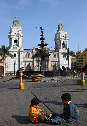 15日,兩名兒童在秘魯首都利馬老城的馬約爾廣場上玩耍。始建于1535年的利馬是秘魯?shù)恼、?jīng)濟和文化中心,集中了全國1/4以上的人口,城區(qū)分為新城和老城兩部分。其中位于西北部的老城保留了大量殖民地時期的建筑,已被列入“世界文化遺產(chǎn)”。11月22日至23日,亞太經(jīng)合組織(APEC)第16次領(lǐng)導(dǎo)人非正式會議將在秘魯首都利馬舉行。新華社記者