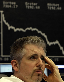 | 一名交易員在德國(guó)法蘭克福股票交易所DAX30指數(shù)的顯示牌前工作。新華社/路透 | 今年來,德國(guó)股市一路暴跌,特別是在9月雷曼兄弟申請(qǐng)破產(chǎn)后,跌幅更大。今年德國(guó)股市DAX指數(shù)已經(jīng)累計(jì)下挫43%,甚至大大高于金融危機(jī)重災(zāi)區(qū)美英等國(guó)股市的跌幅。 德意志交易所場(chǎng)內(nèi)交易員斯特凡·沙夫特說:“受金融危機(jī)影響,德國(guó)股市今年表現(xiàn)非常糟糕,F(xiàn)在還不清楚危機(jī)什么時(shí)候能夠結(jié)束! 今年德國(guó)股市可謂壞消息不斷。在一季度,德國(guó)各大銀行接連公布次貸損失,金額之大令人瞠目,直接導(dǎo)致了銀行、保險(xiǎn)等金融類股票遭受重挫。進(jìn)入二、三季度,德國(guó)GDP分別下跌0.4%、0.5%,意味著德國(guó)經(jīng)濟(jì)陷入“衰退”,而同時(shí)通脹率卻始終在3%以上,宏觀經(jīng)濟(jì)的困境令低迷的股市雪上加霜。進(jìn)入四季度,雷曼兄弟破產(chǎn)直接引發(fā)了全球“黑色十月”行情,德國(guó)股市更是不斷出現(xiàn)日跌幅超過10%的罕見行情。 危急時(shí)刻,默克爾政府出臺(tái)高達(dá)5000億歐元的救市計(jì)劃,歐洲央行在10月到12月連續(xù)三次降息,最終德國(guó)股市艱難維持在4000點(diǎn)以上。 對(duì)于2009年行情走勢(shì),沙夫特說:“預(yù)計(jì)明年上半年股市仍然不會(huì)太好,但不會(huì)像今年這樣糟,希望下半年能夠有所起色!钡乱庵俱y行旗下GSC地產(chǎn)基金總裁鄭驄則更為樂觀,他說:“大部分壞消息都已公布出來了,明年壞消息不會(huì)太多,現(xiàn)在不失為選擇潛力股投資股市的好時(shí)機(jī)!