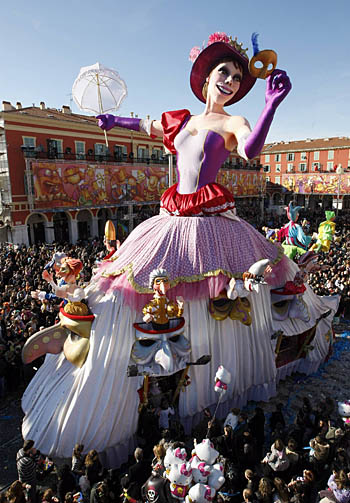 15日,在法國(guó)尼斯,女王花車參加第125屆嘉年華游行活動(dòng)。當(dāng)日,尼斯舉行盛大的嘉年華,各式各樣的花車加入到歡慶游行中。新華社/路透
