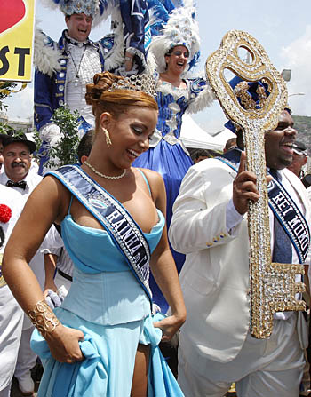 20日,在巴西里約熱內(nèi)盧狂歡節(jié)開(kāi)幕式上,被稱作“莫莫王”的“狂歡節(jié)國(guó)王”(前右)手持象征城市統(tǒng)治權(quán)的城門鑰匙與狂歡節(jié)皇后(前左)一起跳桑巴舞。當(dāng)天,巴西里約熱內(nèi)盧一年一度的盛大狂歡節(jié)拉開(kāi)帷幕。里約熱內(nèi)盧狂歡節(jié)有“地球上最大聚會(huì)”之稱,每年吸引大量國(guó)外游客。新華社/法新