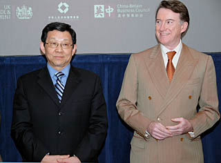 | 2月27日,在英國首都倫敦,中國商務(wù)部長陳德銘(左)與英國商業(yè)、企業(yè)和制度改革大臣曼德爾森一起出席中英企業(yè)項目協(xié)議簽字儀式。新華社記者