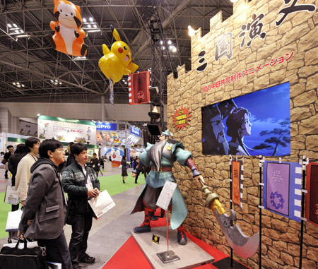 18日,在日本首都東京舉行的國際動漫展上,人們觀看由中國和日本聯(lián)合制作的52集高清動畫片《三國演義》。本屆國際動漫展將持續(xù)4天,來自日本和其它國家和地區(qū)的大約250家公司在這里展示他們最新的動漫作品,預計前來參加的觀眾將達到13000人。
