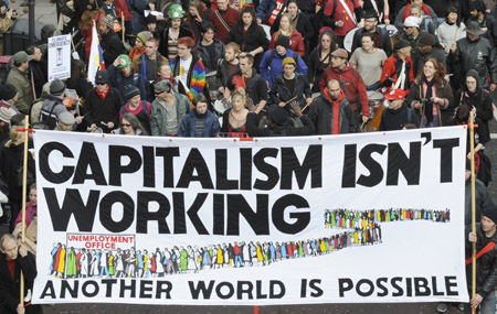28日,超過150個社會團體在倫敦聯(lián)合舉行大規(guī)模游行,呼吁即將在倫敦舉行的二十國集團倫敦金融峰會著重應(yīng)對金融危機對普通人造成的影響,并表達(dá)對貧困、就業(yè)和氣候現(xiàn)狀的不滿。新華社/路透 | 距二十國集團(G20)領(lǐng)導(dǎo)人會議召開尚有幾天,一份由東道國英國起草、涉及2萬億美元全球性財政刺激方案的會議公報草案由德國媒體提前泄露。 不少人懷疑,這可能是對英國主張持反對意見的德國政府內(nèi)部人士所為。
