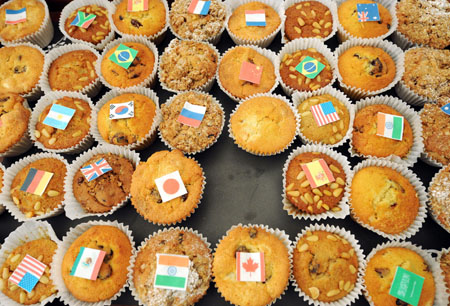 圖為3月14日,在英國霍舍姆舉行的二十國集團(tuán)財(cái)政部長和中央銀行行長會(huì)議上,貼有二十國集團(tuán)成員旗幟的小點(diǎn)心擺放在新聞中心的餐臺(tái)上。新華社/法新 | 二十國集團(tuán)領(lǐng)導(dǎo)人將于4月2日再次在英國倫敦會(huì)晤,商討如何應(yīng)對(duì)金融危機(jī)和拯救全球經(jīng)濟(jì)。人們期待此次峰會(huì)能夠?yàn)槿蚪?jīng)濟(jì)擺脫困境突出重圍找到一條道路。