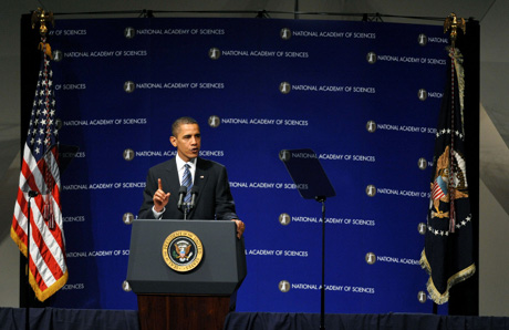 27日,美國(guó)總統(tǒng)奧巴馬在美國(guó)國(guó)家科學(xué)院第146屆年會(huì)上發(fā)表演講,宣布政府會(huì)在科學(xué)研究和改善科學(xué)教育方面投入更多的資金。新華社/伽瑪 |