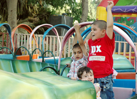 5月30日,伊拉克兒童在首都巴格達(dá)市中心的扎烏拉公園玩耍。當(dāng)天,許多伊拉克人帶著孩子來到公園度過“六一”兒童節(jié)前的最后一個休息日。雖然仍不斷有各類襲擊發(fā)生,但伊拉克人還是小心翼翼地帶孩子到一些相對安全的場所游玩。伊拉克的周五、周六為假日。