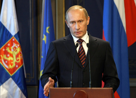 3日,俄羅斯總理普京在芬蘭首都赫爾辛基出席新聞發(fā)布會(huì)。