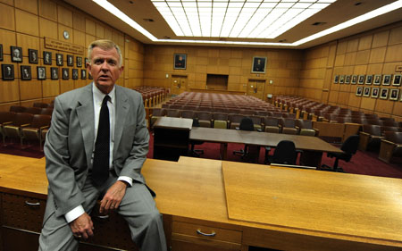 15日,美國加利福尼亞州(加州)洛杉磯高等法院法官坐在空曠的審判廳里。當(dāng)天,加州各法院關(guān)門不審理大部分案件。加州目前面臨高達(dá)263億美元的財(cái)政預(yù)算缺口。為彌補(bǔ)這一缺口,加州政府被迫采取了一系列措施,包括發(fā)放政府借據(jù)、裁員以及強(qiáng)制休假等。其中,法院也在未來12個月內(nèi)每月關(guān)門一天,以節(jié)省開支。