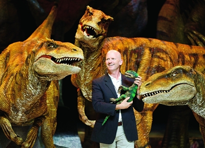 5日,在英國倫敦,藝術(shù)導(dǎo)演斯科特·法里斯站在恐龍模型中間。這個(gè)由法里斯導(dǎo)演的“與恐龍為伴”主題演出以15頭按照真實(shí)大小制作的機(jī)械恐龍?jiān)佻F(xiàn)了遠(yuǎn)古時(shí)期的恐龍生存狀況,將持續(xù)到8月31日。新華社/路透