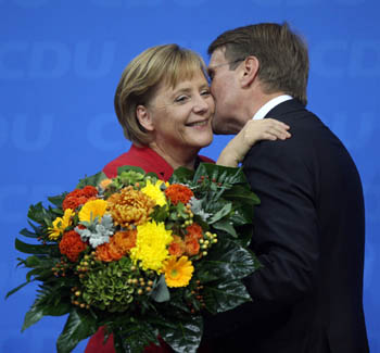 德國第17屆聯(lián)邦議院選舉結(jié)果27日晚揭曉,德國現(xiàn)任總理默克爾成功連任。默克爾宣布,由她領(lǐng)導(dǎo)的聯(lián)盟黨(由基民盟和基社盟組成)將與自民黨盡快組建新一屆德國政府。德國由大聯(lián)合政府更迭為大黨帶小黨的中右聯(lián)合政府,其經(jīng)濟政策走向值得人們關(guān)注。