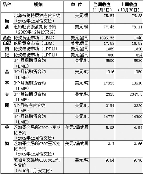 國際大宗商品期貨價(jià)格明細(xì)表[圖]
