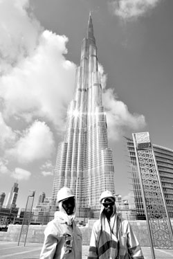 11月,迪拜世界公司出現(xiàn)大規(guī)模債務(wù)違約,引起國(guó)際金融市場(chǎng)連鎖反應(yīng)。12月14日,兩名外籍勞工在阿聯(lián)酋迪拜塔邊的工地上休息。新華社發(fā) |