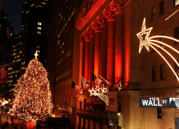 圣誕樹、霓虹彩燈等圣誕景觀給美國(guó)紐約華爾街帶來濃濃的節(jié)日氛圍。新華社記者 申宏