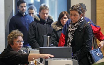 3月6日,在冰島雷克雅未克的一個(gè)投票站,人們排隊(duì)等待投票。冰島官方初步統(tǒng)計(jì)數(shù)據(jù)顯示,6日舉行的全民公決否決了賠償英國(guó)和荷蘭儲(chǔ)戶損失的議案。新華社/路透