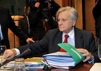 3月15日,歐洲央行行長特里謝在比利時首都布魯塞爾的歐盟總部參加歐元區(qū)財長會議。當天,歐元區(qū)16國財政部長在布魯塞爾舉行會議,希臘債務危機成為會議的主要議題。新華社記者