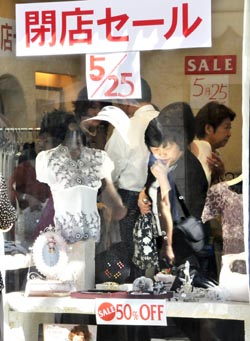 在日本首都東京,購(gòu)物者在挑選打折商品。(資料照片)新華社/法新 |