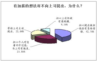 正如上面的數(shù)據(jù)反映的一樣,接受本次調(diào)查的公司職員中,從來沒有向上司提出過加薪要求的比例超過一半,為51.3%;而在曾經(jīng)提出過加薪要求的受訪者中,僅有8.5%的職員得到了較好的效果,效果不好的比例為40.2%。