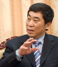 中國華電集團公司總經(jīng)理曹培璽在接受記者采訪。 王飛 攝 |
