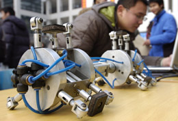 1月5日,一名學(xué)生通過電腦演示他和同學(xué)設(shè)計的“氣動機器人”。當日,南京東南大學(xué)舉行本科生科技創(chuàng)新成果展示會,共展出250多項科技創(chuàng)新成果。近年,東南大學(xué)推出“大學(xué)生科研訓(xùn)練計劃”,學(xué)校設(shè)立專項基金,制定創(chuàng)新學(xué)分認定等政策鼓勵學(xué)生創(chuàng)新,從2004年至今,全校本科生從事的各類科技創(chuàng)新項目約達3000項。(本報資料照片) |