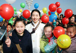 2月7日,煙臺小朋友和一名韓國旅游小姐合影留念。當(dāng)日,中韓旅游交流活動啟動儀式在山東煙臺濱海廣場舉行,中韓兩國旅游界人士及觀眾近千人參加了啟動儀式。