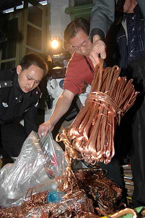 有電信系統(tǒng)的人士評論說,汨羅市再生資源中心儼然是一個(gè)收購盜竊電纜的專業(yè)場所,白天收購,晚上煉銅,然后外銷,形成了“一條龍”。