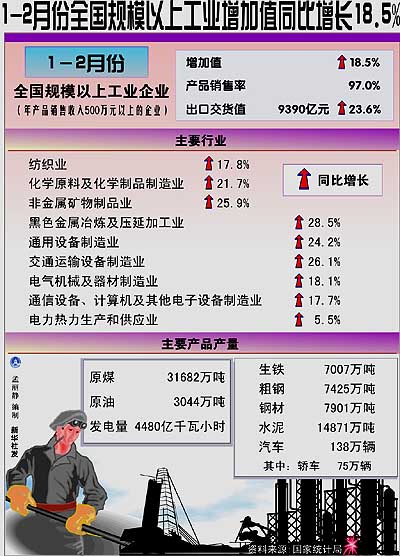 1-2月全國規(guī)模以上工業(yè)增加值同比增長18.5%