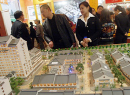 3月16日,上海市民在房展會上觀看樓盤模型。當(dāng)日,上海2007年首場大型房展會——第九屆上海之春房產(chǎn)展示交易會在展覽中心開幕,近百家參展商參加。相比以往歷屆,本屆房產(chǎn)會開幕首日觀眾數(shù)量有所減少,參展商也比2006年有所減少。新華社發(fā) |