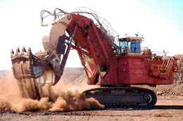 2005年10月18日,在西澳大利亞州首府珀斯,中國(guó)中鋼集團(tuán)與澳大利亞中西部鐵礦公司簽署了一項(xiàng)總額15億澳元的鐵礦開(kāi)發(fā)協(xié)議。圖為10月17日在中鋼集團(tuán)與澳方合資的恰那鐵礦(西澳大利亞州)新礦點(diǎn)拍攝的進(jìn)行采前平整作業(yè)的電鏟車。(本報(bào)資料照片) |