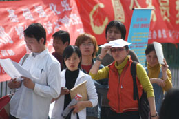 2005年4月14日,報名者在烈日下排隊。當天是安徽省2005年公務(wù)員招考報名第一天。據(jù)悉,2005年安徽省將招1818名公務(wù)員,排除肝炎的乙肝病毒攜帶者也可報考。 | 眼下正是求職高峰,然而,一種聲稱能幫助乙肝病毒攜帶者逃過體檢關(guān)的“乙肝作弊藥”也在一些網(wǎng)上迎來“銷售高峰”。 “乙肝作弊藥”究竟有沒有作用?采訪中,醫(yī)學專家對網(wǎng)上報道的“乙肝作弊藥”持否定態(tài)度,認為它不僅不能達到使服藥者順利通過體檢的作用,還會對人身體產(chǎn)生危害,甚至引起死亡。 然而,誰給了“乙肝作弊藥”興風作浪的空間?