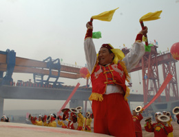 4月22日,東起陜西華陰新華山站,西至西安臨潼新站,全長(zhǎng)79.732公里的鄭州至西安鐵路客運(yùn)專線渭河特大橋正式開始架梁。鄭州至西安鐵路專線是我國實(shí)施西部大開發(fā)戰(zhàn)略的一項(xiàng)標(biāo)志性工程。本報(bào)記者:焦衛(wèi)平