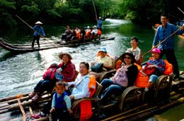 旅客在武夷山九曲溪乘坐竹筏。 本報(bào)記者:張國(guó)俊