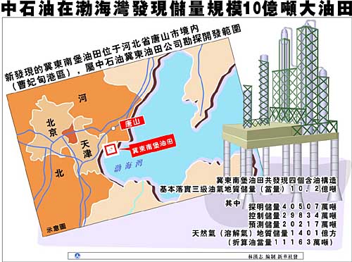 中石油冀東油田公司副總經(jīng)理常學軍介紹說,這個大油田具有“兩大三高四好”的特點,“兩大”就是儲量大,10億噸的儲量是相當驚人的;油層厚度大,平均單井鉆遇油層厚度可達80米至100米;“三高”就是單井產(chǎn)量高,平均在100噸至500噸;儲量豐度高,平均每平方公里達500萬噸;落實程度高,單口井落實采控程度在2平方公里;“四好”就是油層物性好,孔隙度在25%至32%,滲透率為300至1500毫達西;油品品質(zhì)好,密度每立方厘米為0.82至0.84,是典型的輕質(zhì)油,粘度也是最佳比例;試采效果好,單井日穩(wěn)定產(chǎn)量為100噸至500噸;勘探效益好,整個油田發(fā)現(xiàn)成本較低。