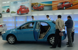 5月份西安車市呈現(xiàn)出購銷兩旺的態(tài)勢,汽車經(jīng)銷商也紛紛推出各種促銷活動,迎接購車熱潮。圖為西安市民在“2007西安春季車展”上看車。本報記者:丁海濤 攝