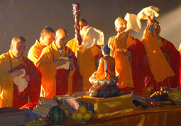 當(dāng)天,中國(guó)嵩山少林寺《禪宗少林·音樂(lè)大典》開(kāi)光祈;顒(dòng)在登封待仙溝舉行。少林寺方丈釋永信等9名高僧和近千名僧人參與了祈福活動(dòng),祈!抖U宗少林·音樂(lè)大典》的每個(gè)音符和畫(huà)面都為人類傳遞祥和、和諧和圓滿的信息。 |