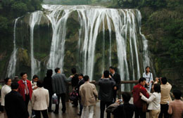 游客在黃果樹(shù)瀑布景區(qū)觀光。本報(bào)記者:楊俊江 攝 |