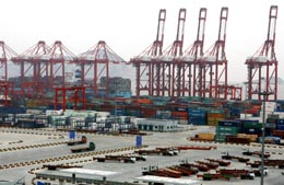 統(tǒng)計數字表明,2006年長三角地區(qū)港口貨物吞吐量完成22.09億噸,比上年增長15.8%,占全國的比重達39.4%,集裝箱吞吐量3348.2萬標箱,同比增長25.4%,占全國的比重達36%。其中上海港貨物吞吐量5.37億噸,同比增長21.3%,繼2005年躍居世界首位后繼續(xù)保持世界第一;浙江省港口貨物吞吐量完成8.21億噸,集裝箱吞吐量752萬標箱,分別增長17.1%、35.5%;江蘇省港口貨物和集裝箱吞吐量分別達到8.5億噸和425.1萬標箱,同比分別增長12.5%、38.9%。